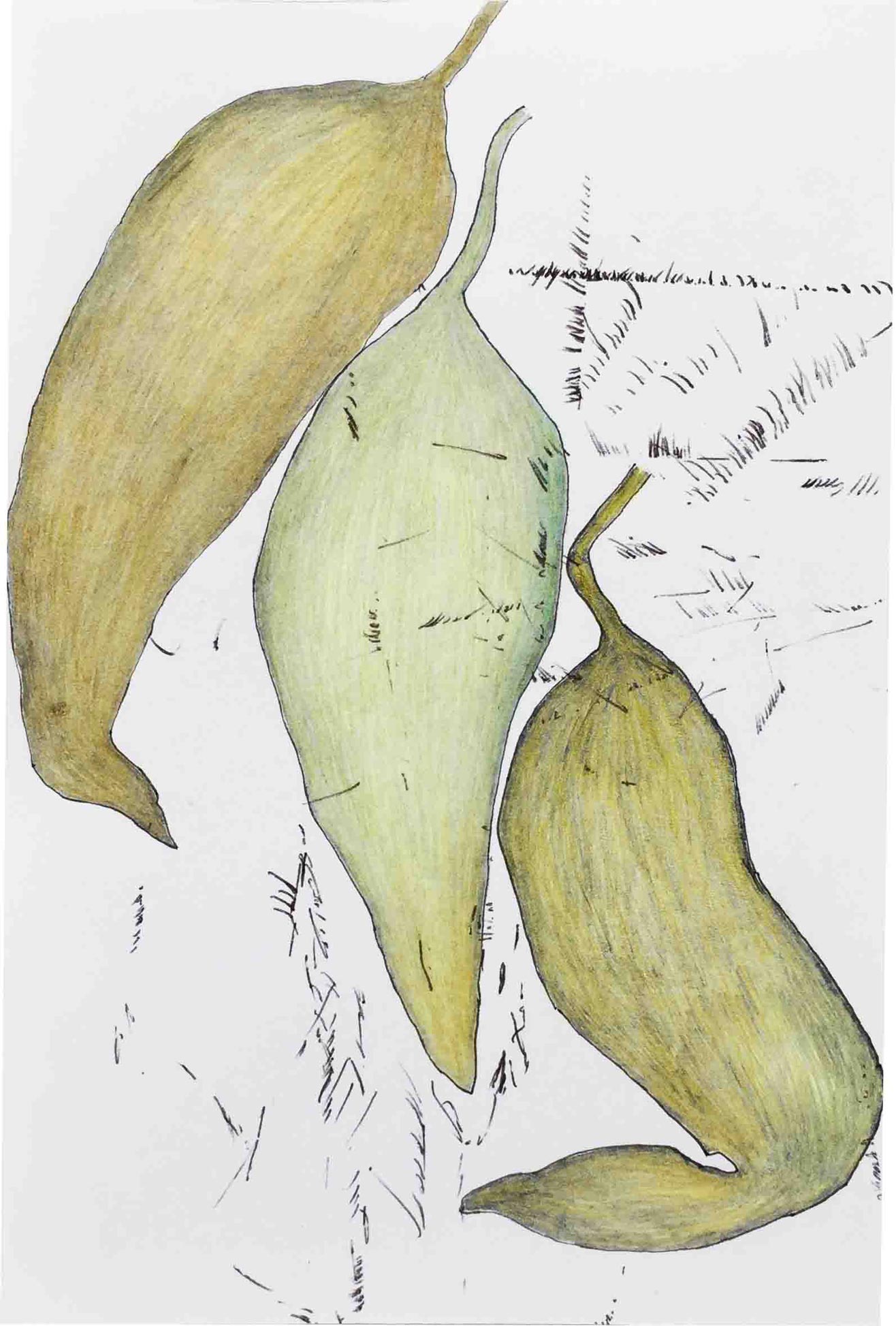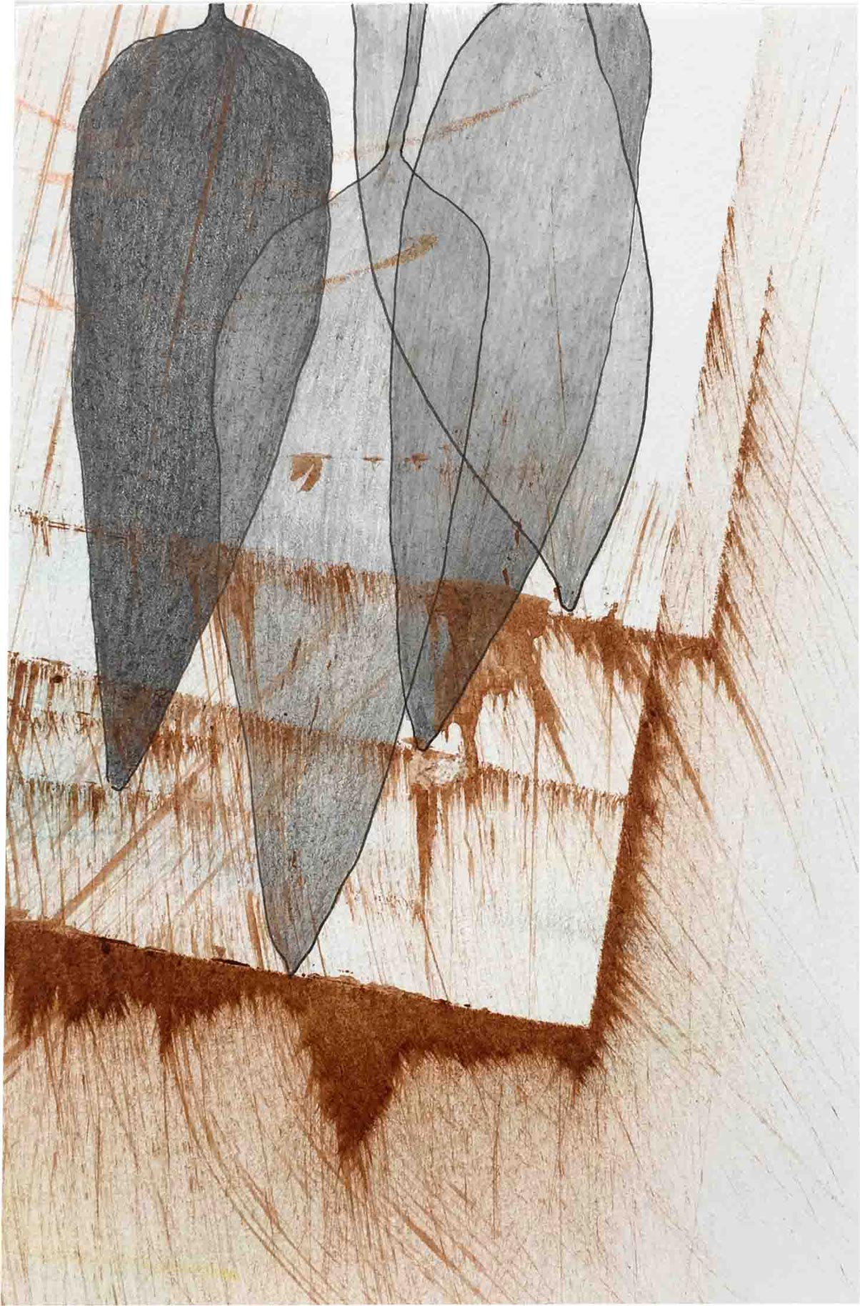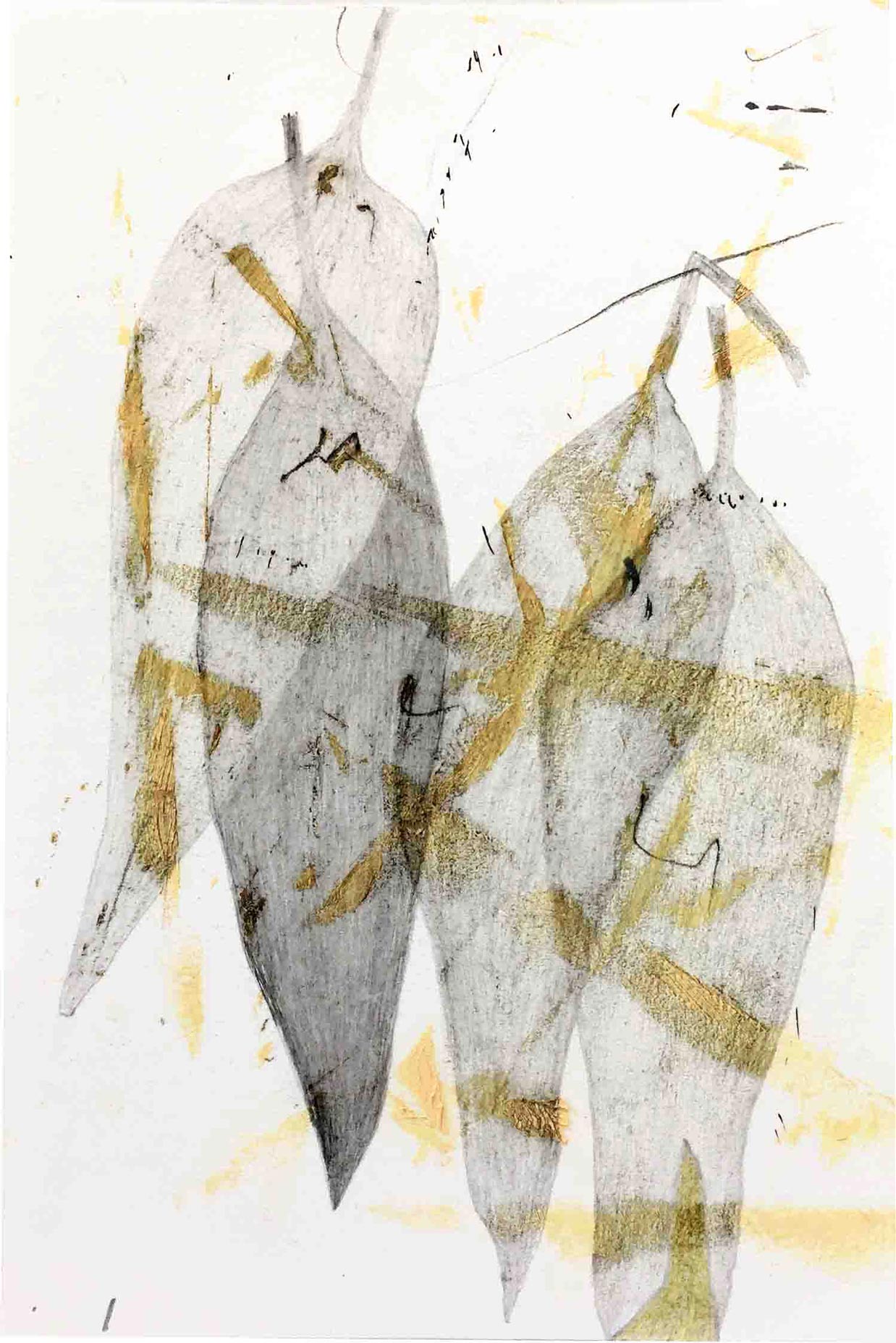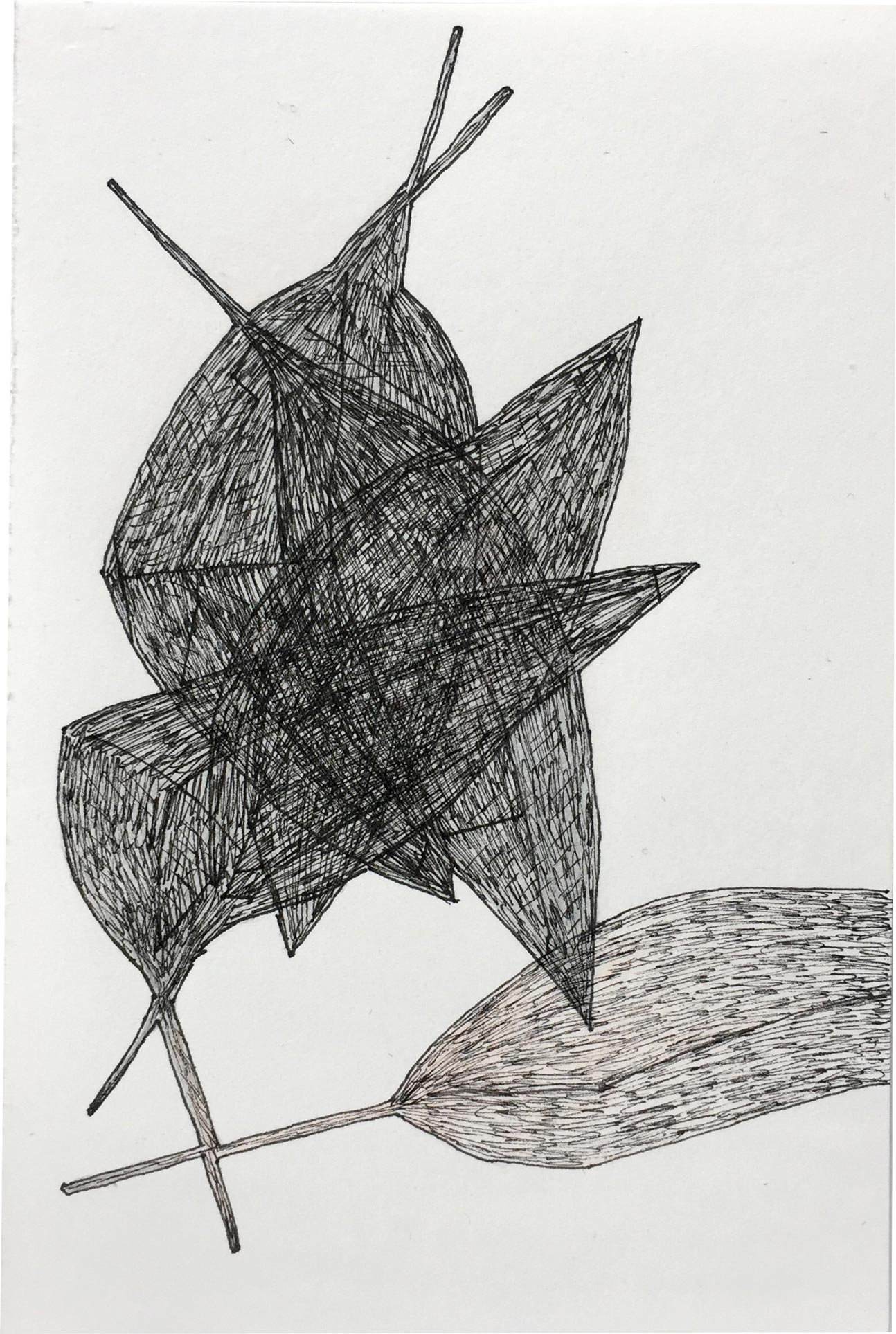 Ausgelegt in Vitrinen laden 400 kleine, intime Zeichnungen zum vergleichenden Blick ein. Die Arbeit »Blätter« entstand im Zeitraum 2017/2018 und wurde in dieser Ausdehnung für die »gang-ART« im Alberhaus, Reutlingen entwickelt. Die Zeichnungen scheinen in ihrer Konzentration wie aus der Zeit gefallen. In der Gesamtschau bündelt sich eine Kraft, die aus der Verschiedenheit untereinander sich nährt.
