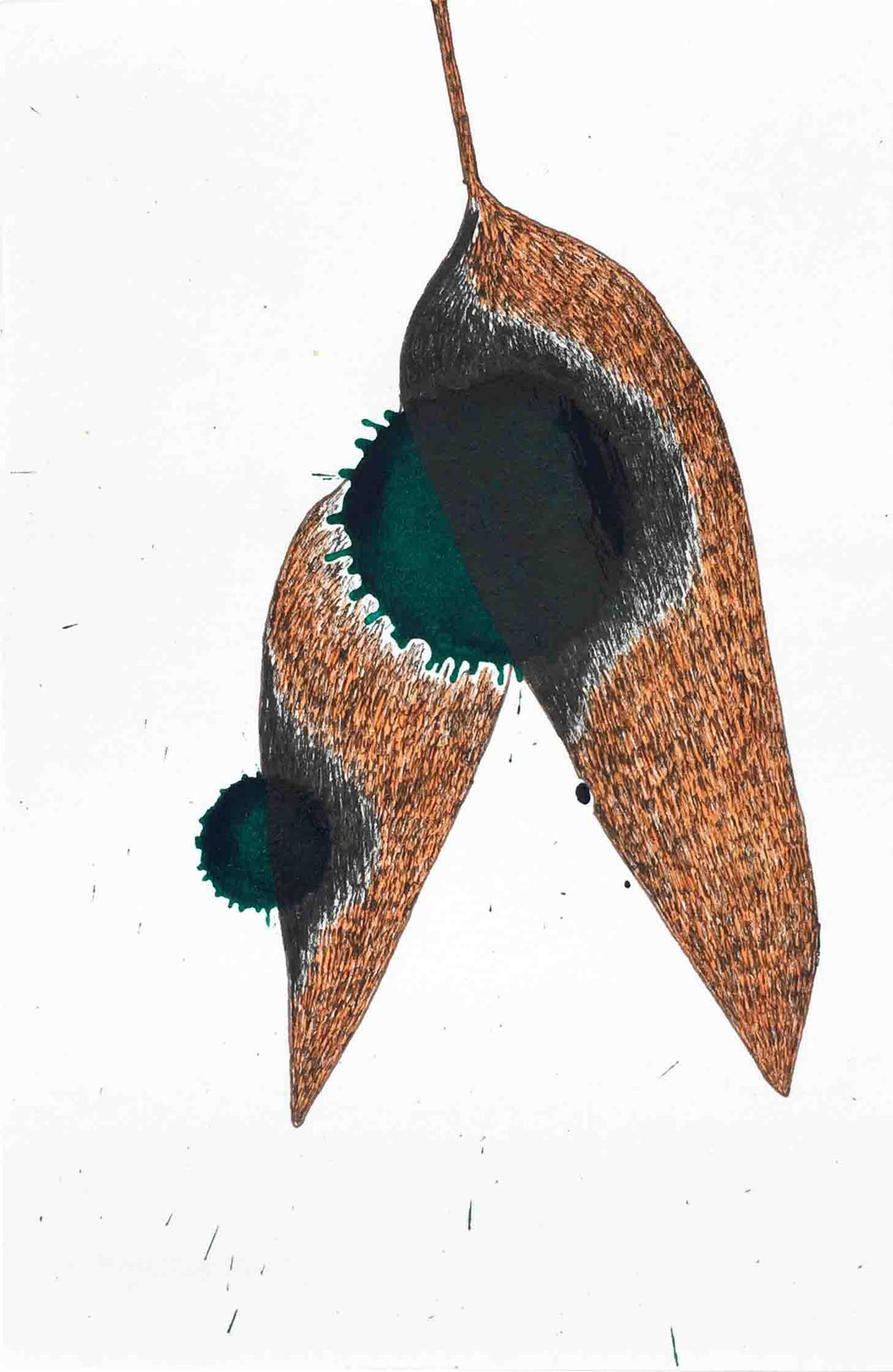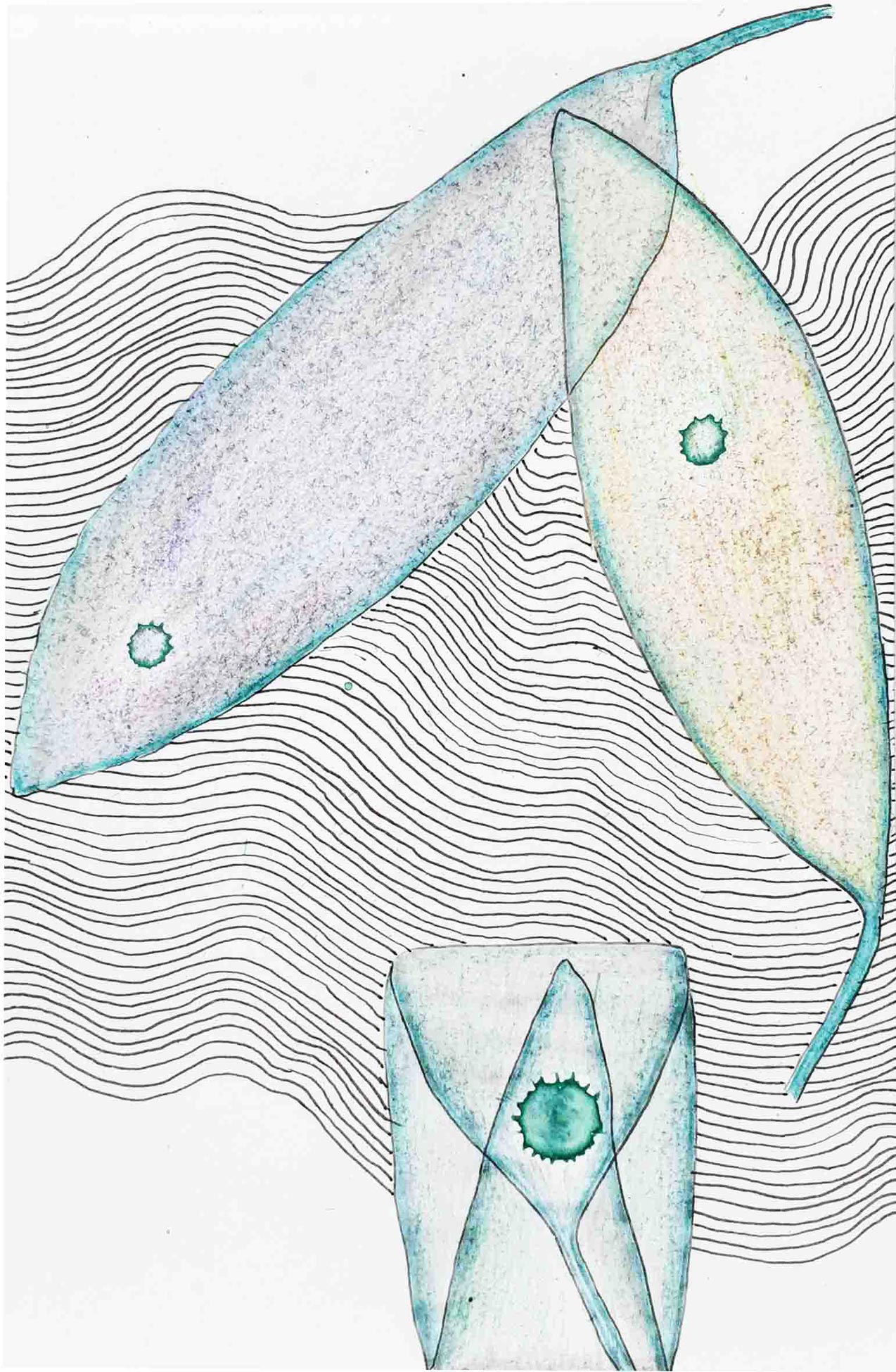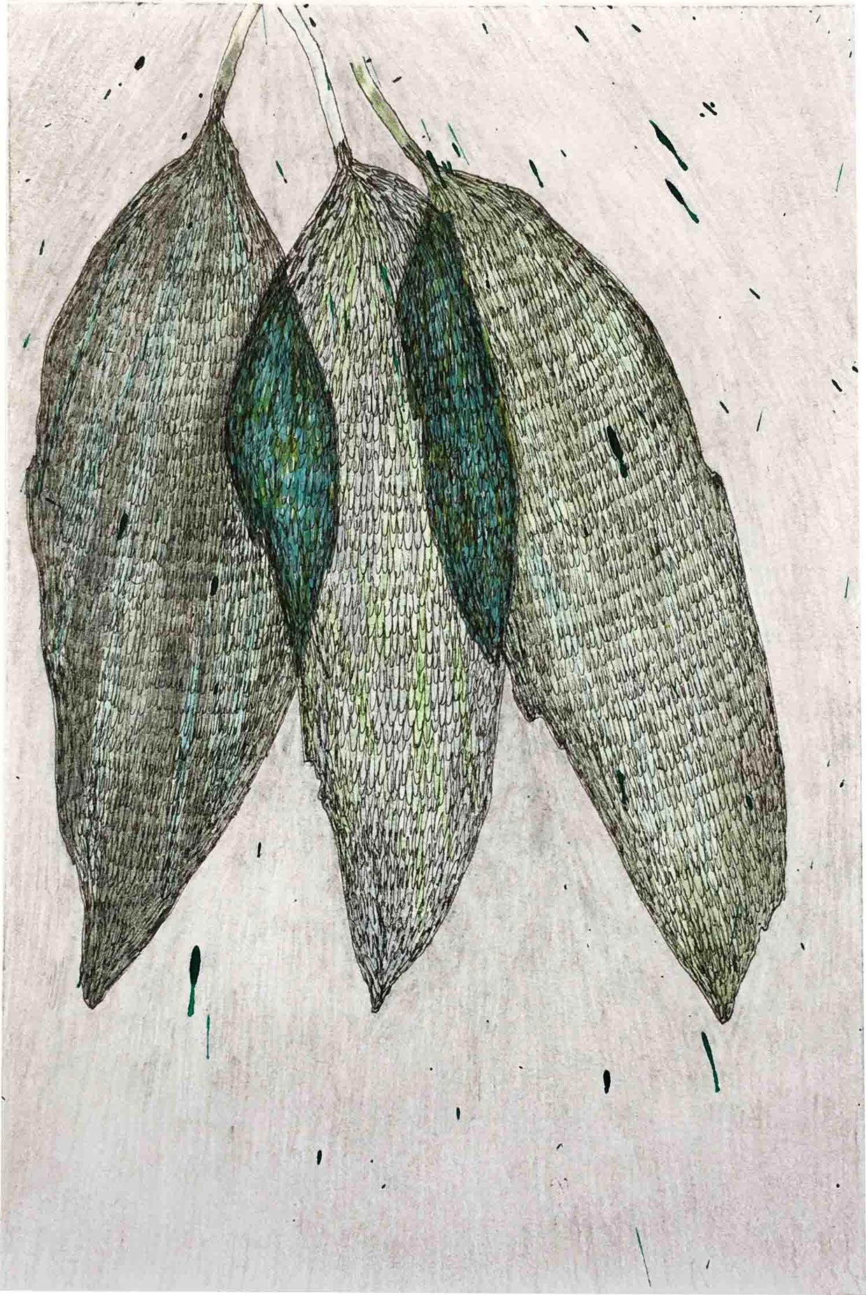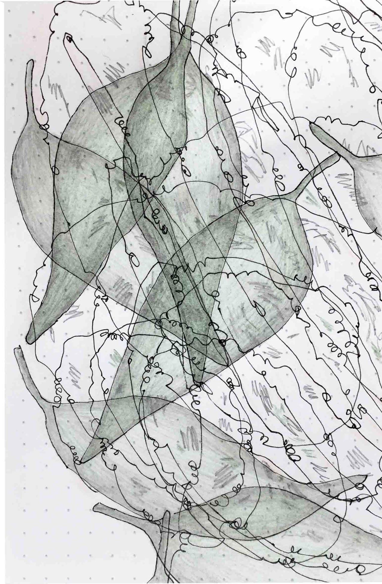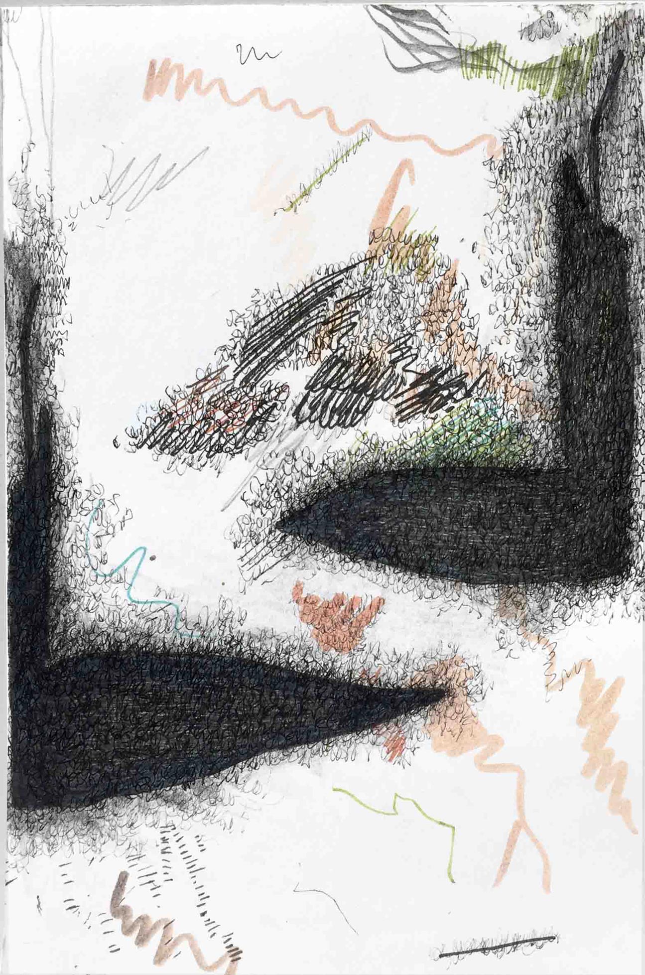 Ausgelegt in Vitrinen laden 400 kleine, intime Zeichnungen zum vergleichenden Blick ein. Die Arbeit »Blätter« entstand im Zeitraum 2017/2018 und wurde in dieser Ausdehnung für die »gang-ART« im Alberhaus, Reutlingen entwickelt. Die Zeichnungen scheinen in ihrer Konzentration wie aus der Zeit gefallen. In der Gesamtschau bündelt sich eine Kraft, die aus der Verschiedenheit untereinander sich nährt.