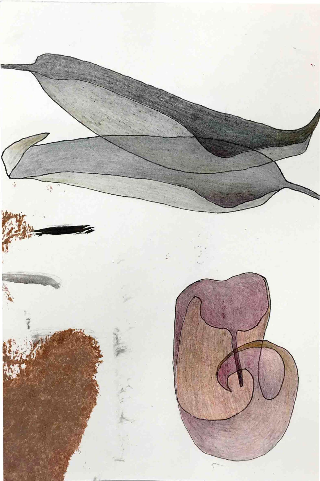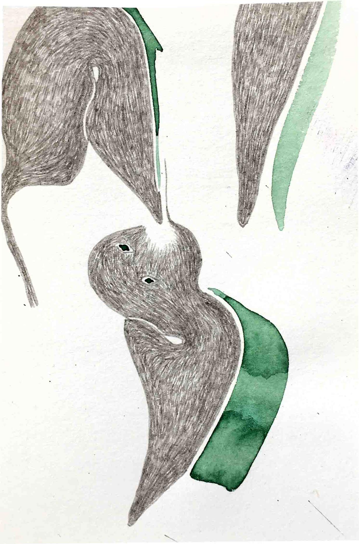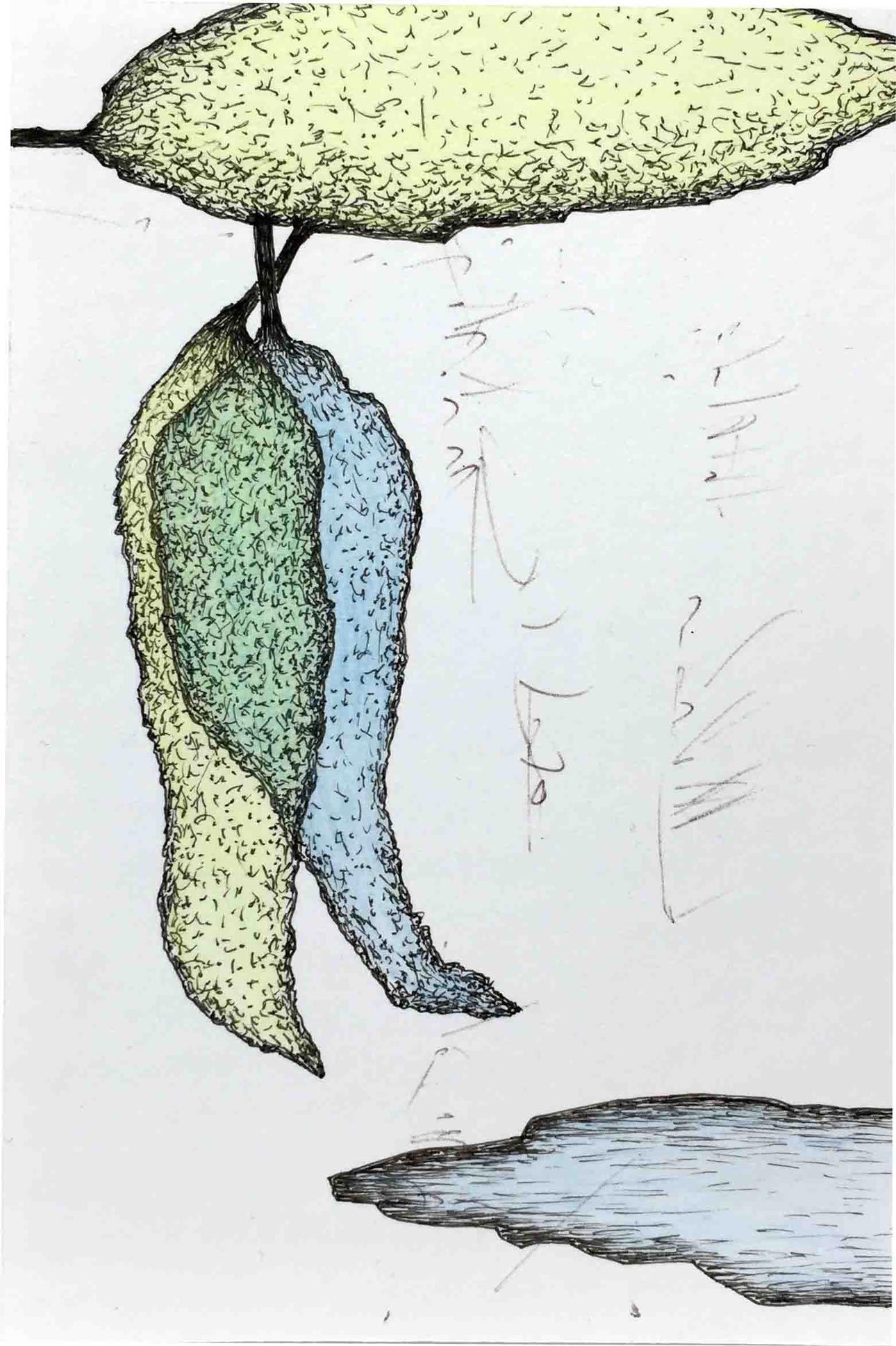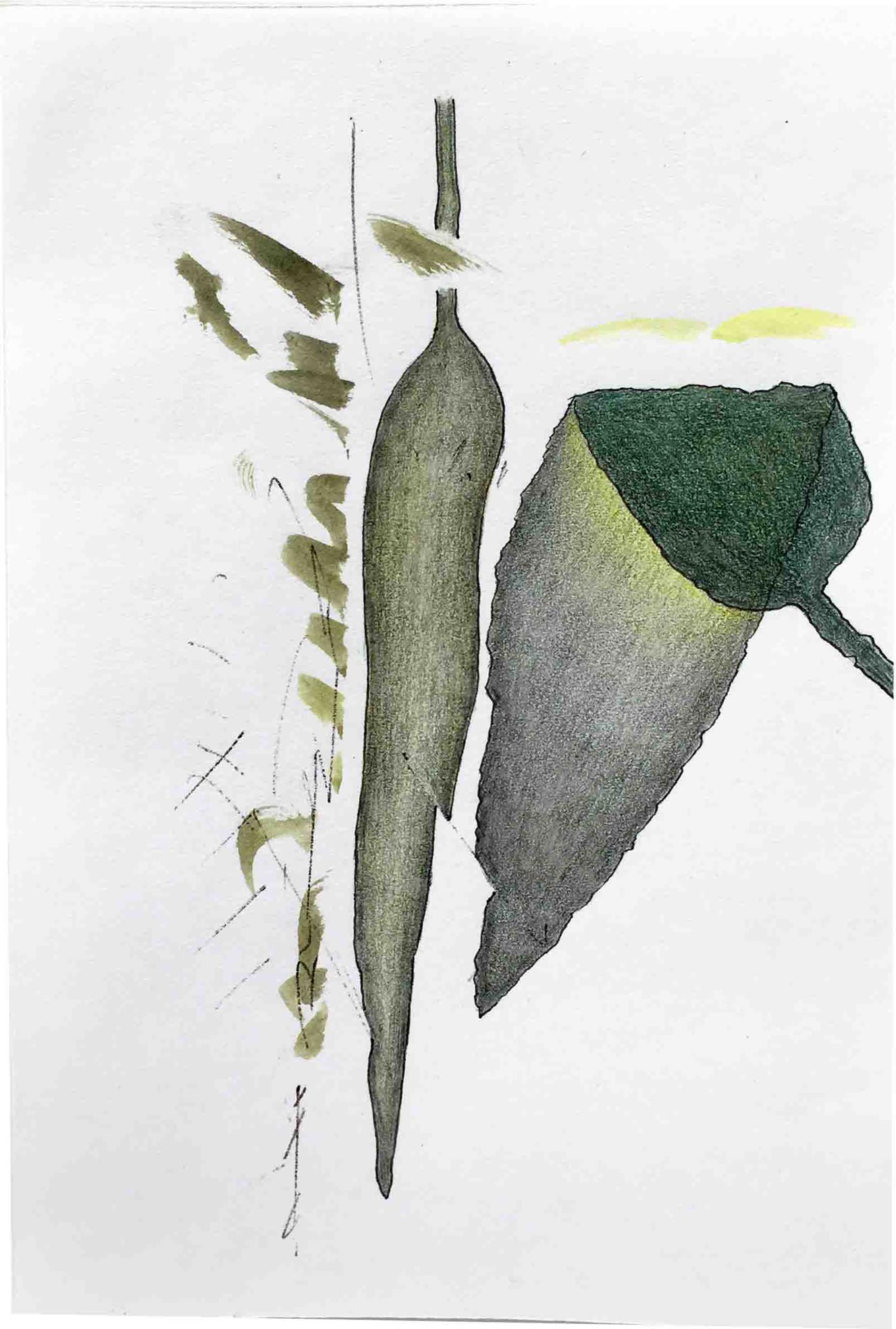 Ausgelegt in Vitrinen laden 400 kleine, intime Zeichnungen zum vergleichenden Blick ein. Die Arbeit »Blätter« entstand im Zeitraum 2017/2018 und wurde in dieser Ausdehnung für die »gang-ART« im Alberhaus, Reutlingen entwickelt. Die Zeichnungen scheinen in ihrer Konzentration wie aus der Zeit gefallen. In der Gesamtschau bündelt sich eine Kraft, die aus der Verschiedenheit untereinander sich nährt.