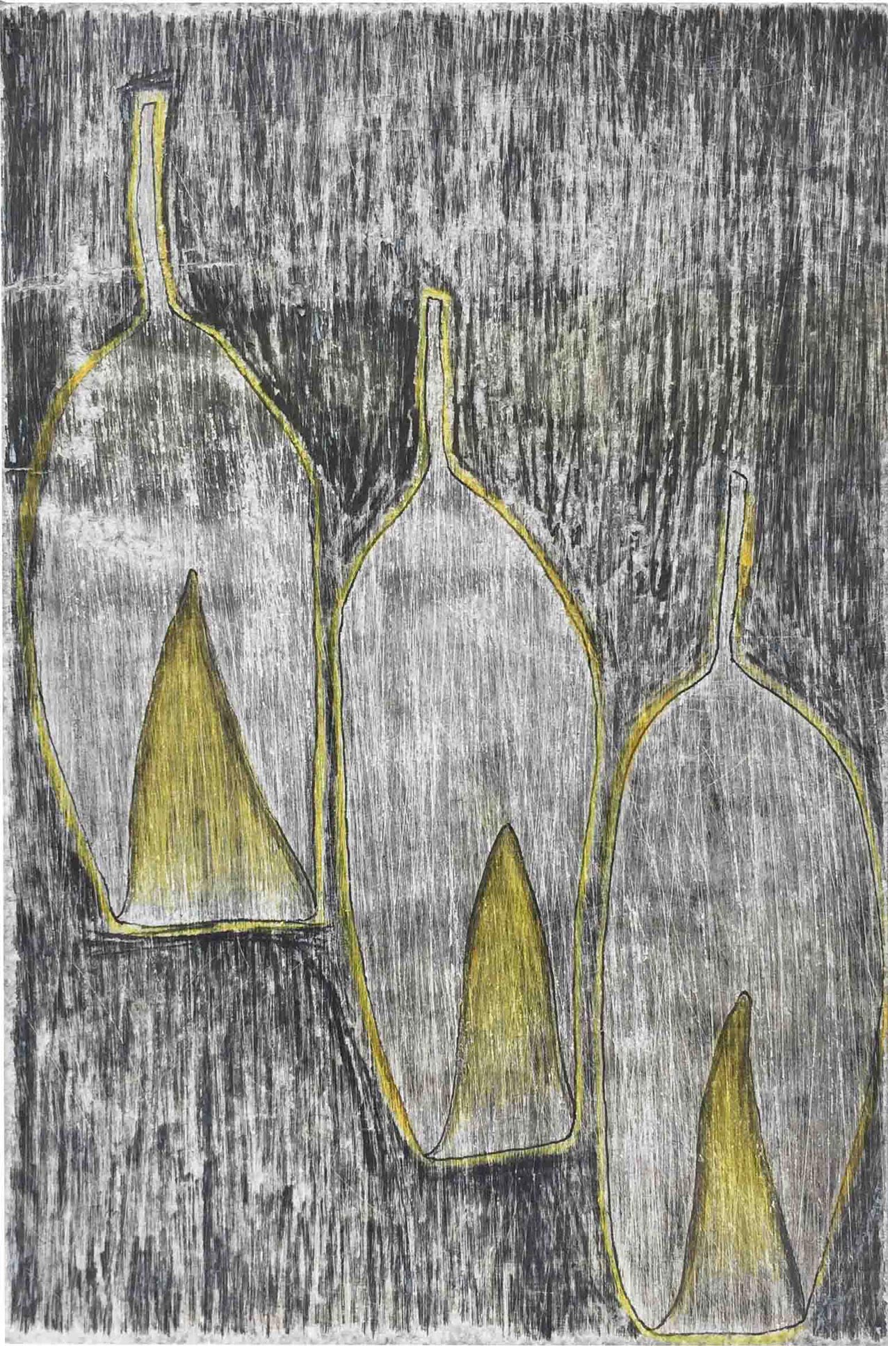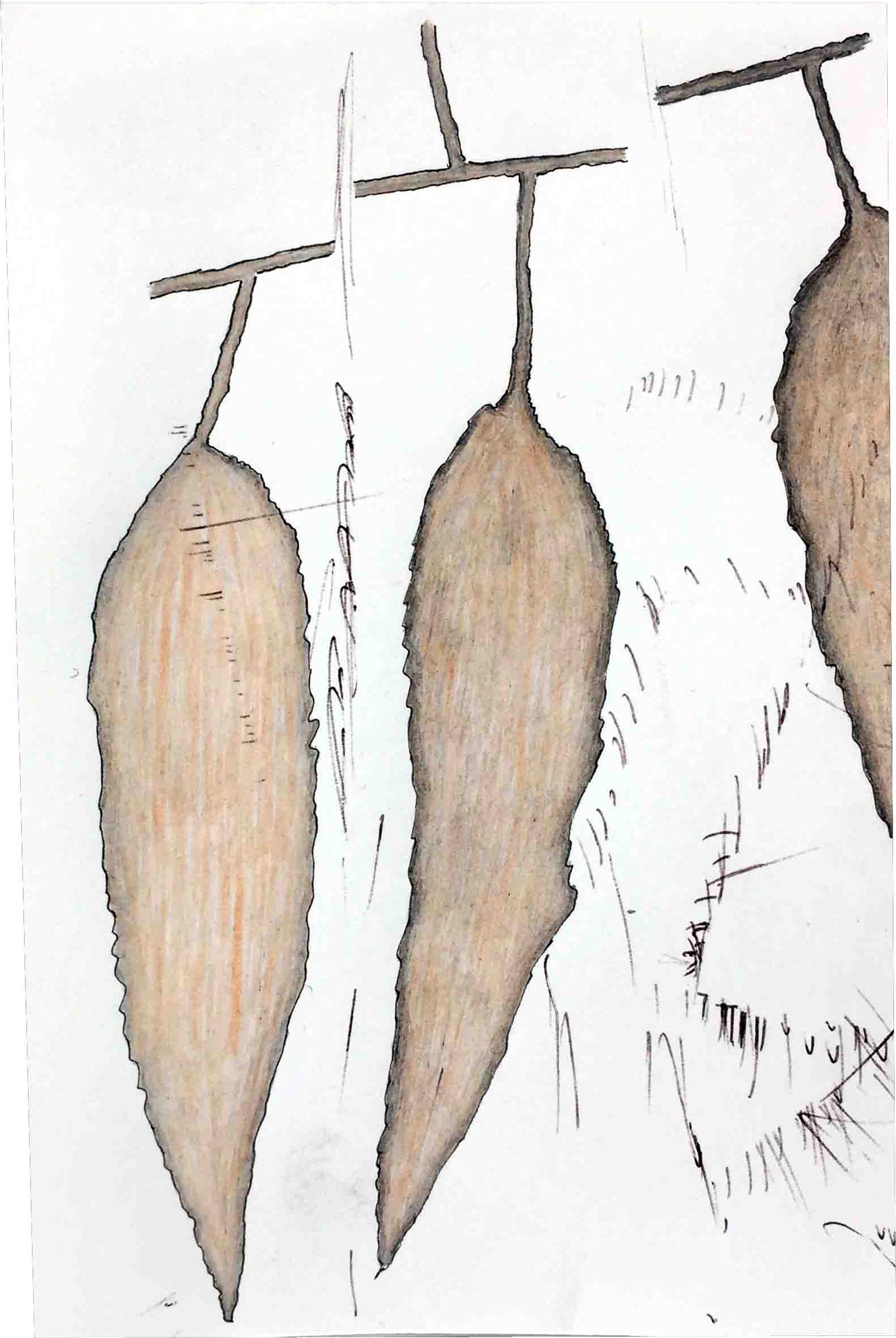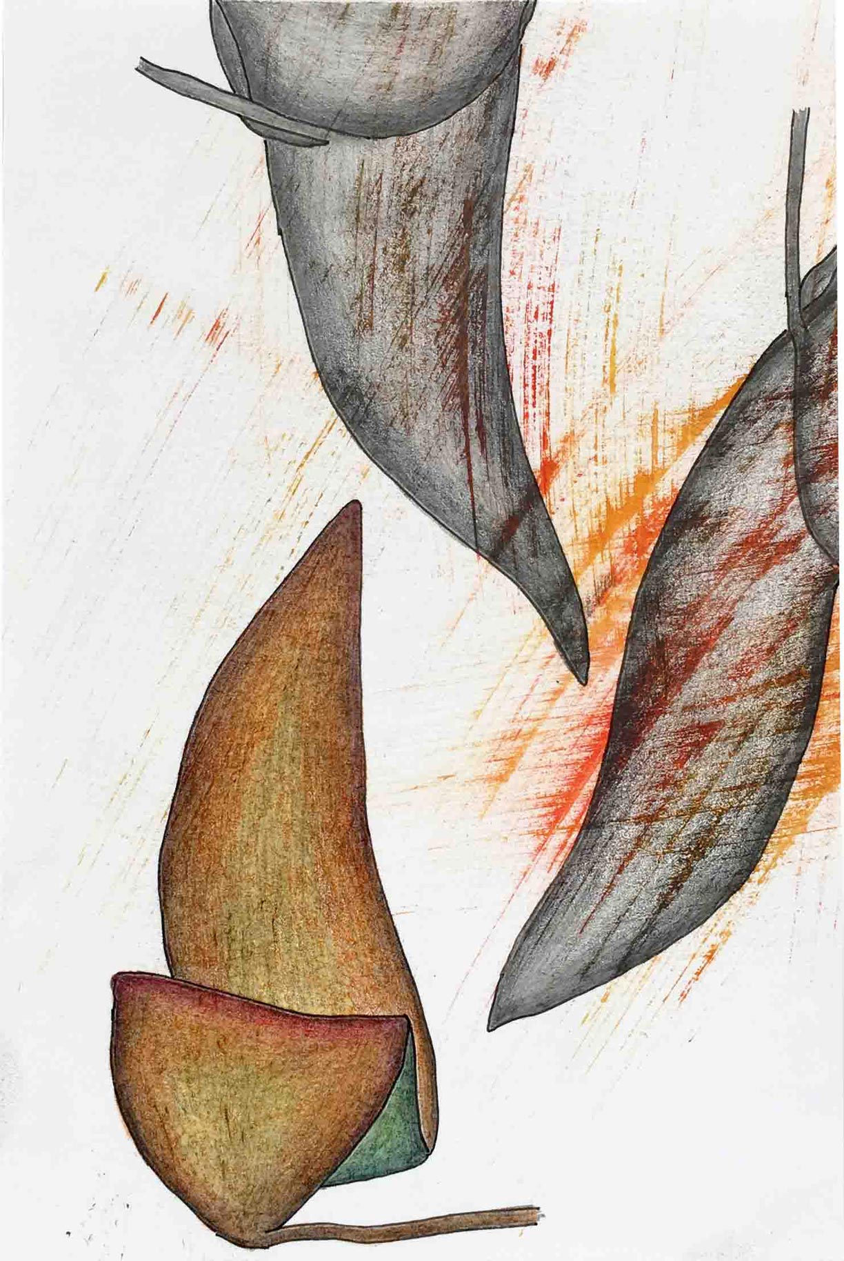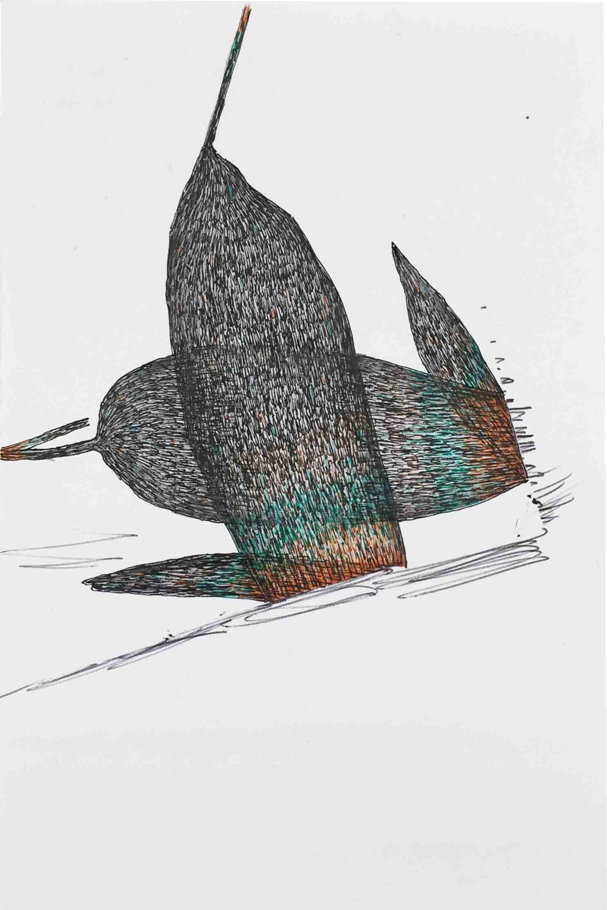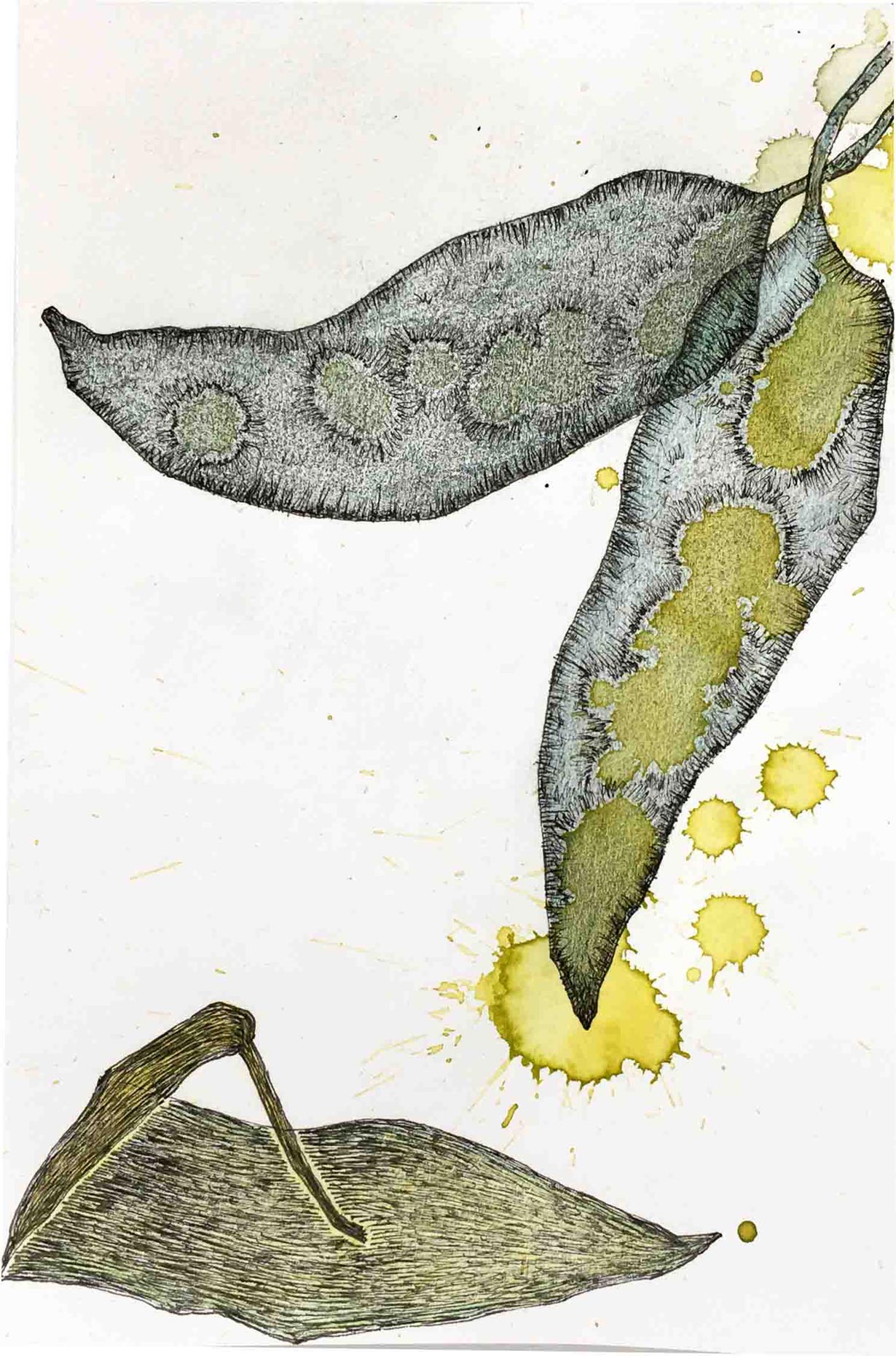 Ausgelegt in Vitrinen laden 400 kleine, intime Zeichnungen zum vergleichenden Blick ein. Die Arbeit »Blätter« entstand im Zeitraum 2017/2018 und wurde in dieser Ausdehnung für die »gang-ART« im Alberhaus, Reutlingen entwickelt. Die Zeichnungen scheinen in ihrer Konzentration wie aus der Zeit gefallen. In der Gesamtschau bündelt sich eine Kraft, die aus der Verschiedenheit untereinander sich nährt.